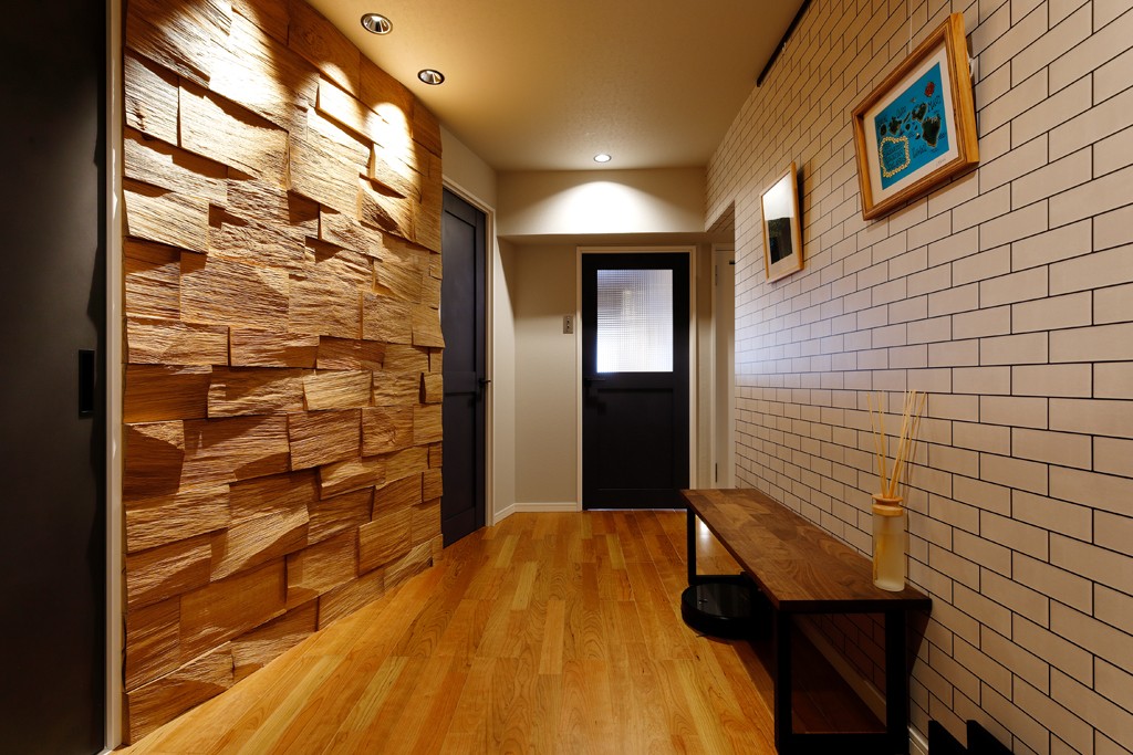 施工事例:玄関リフォーム 石貼りアクセントウォール 大阪・兵庫・奈良・京都・名古屋・東京のリフォームはナサホーム。