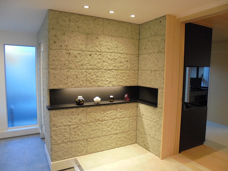 玄関ホールに存在感ある大谷石の壁 宇都宮市K様邸大谷石産業株式会社 - 大谷石の 加工・施工・販売栃木県宇都宮市。