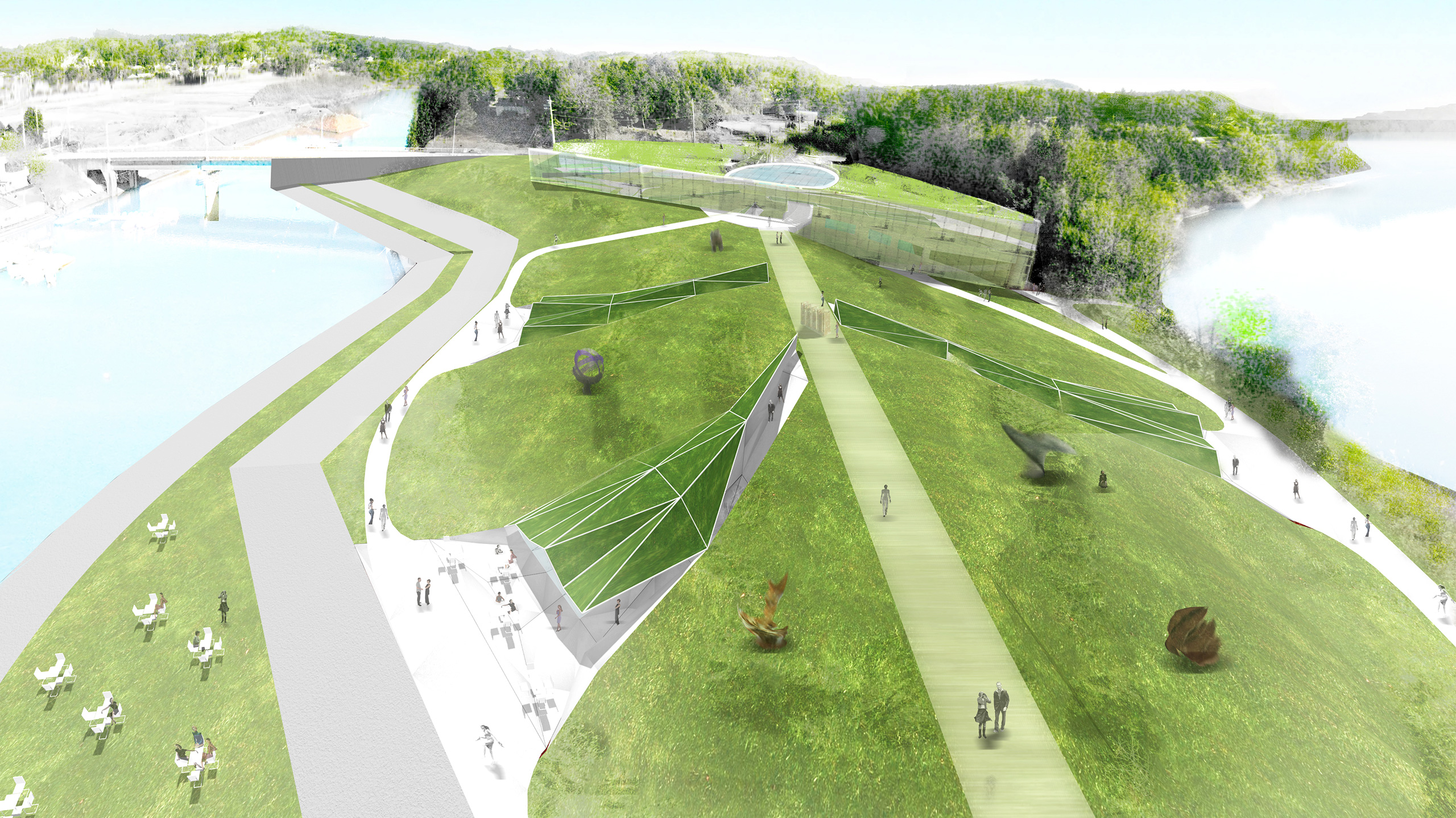 今月の一枚<フェリカ建築&デザイン専門学校 長谷川尚輝 水と緑と青空の美術館>建築パース.com。
