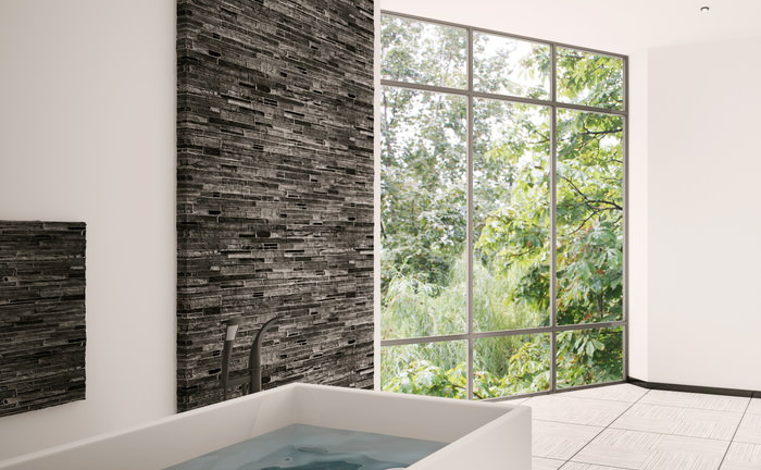 屋内外の壁に使える方形乱張り石材を発売新建ハウジング。