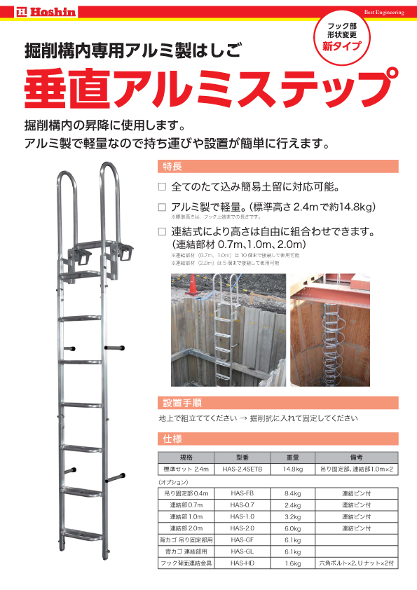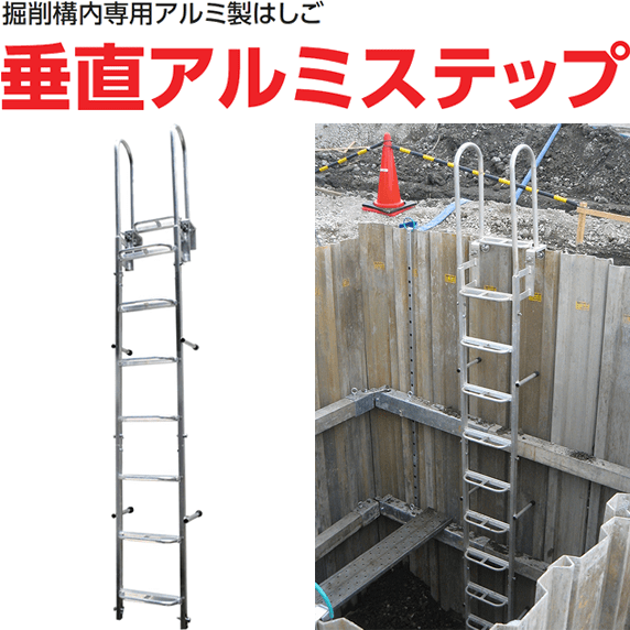 掘削構内専用アルミ製はしご 垂直アルミステップ 標準セット 2.4m ホーシン個人宅宅配不可掘削構内専用アルミ製はしご 垂直アルミステップ背カゴ 株式会社ホーシン建設資材・工法選定の比較サイト。