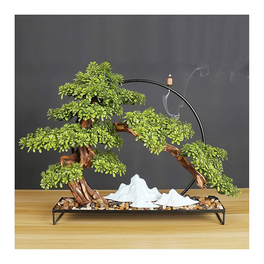 Amazon.co.jp: 風水 置物 造花 人工観葉植物 盆栽 松 盆栽 書斎 禅 香立て付き 癒しと開運 人工観葉植物グリーン:ホーム&キッチン。