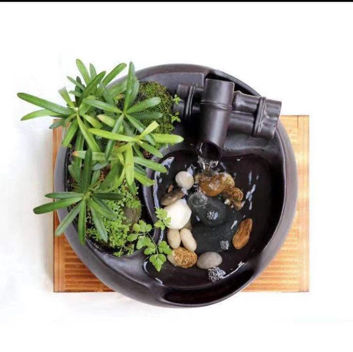 人気品新入荷セレブ好物卓上噴水 天然 加湿器 植木鉢 竹 玄関噴水 風水。