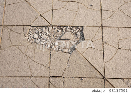 割れたタイル張りの歩道の写真素材98157591- PIXTA。