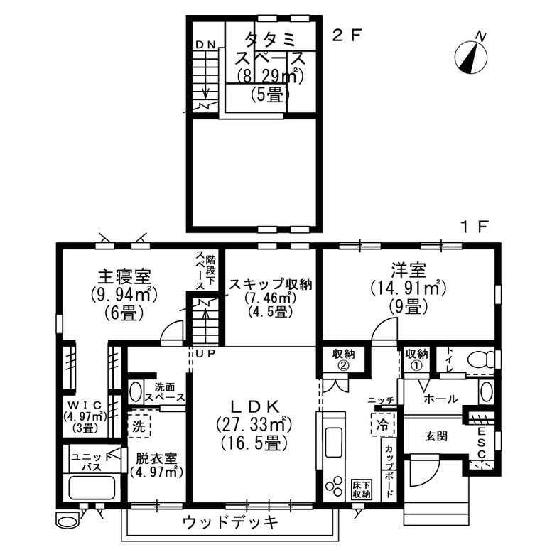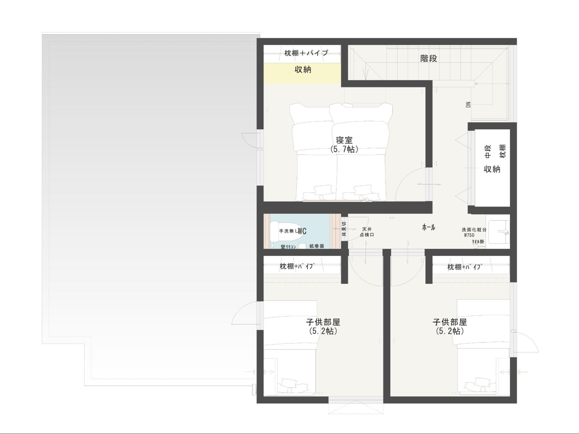 2階浴室で洗面所と寝室の間にウォークインクローゼットのある間取り 29坪4LDK2階建 No.60Cみゆう間取り相談室。