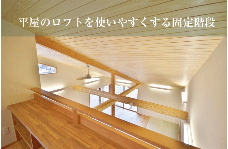平屋のロフトを使いやすくする固定階段埼玉県の工務店 蓮見工務店+蓮見建築設計事務所新築のご依頼なら。