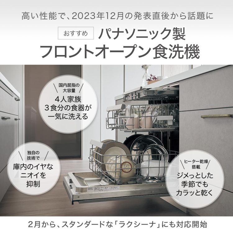 パナソニックがフロントオープン食器洗い乾燥機を搭載したシステムキッチン「Lクラス キッチン」「ラクシーナ」を発売@DIME アットダイム。