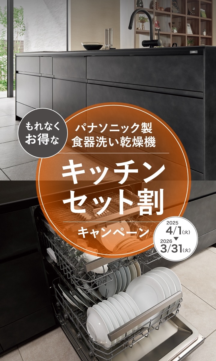 LIXILキッチンパナソニック製食器洗い乾燥機キッチンセット割キャンペーン。