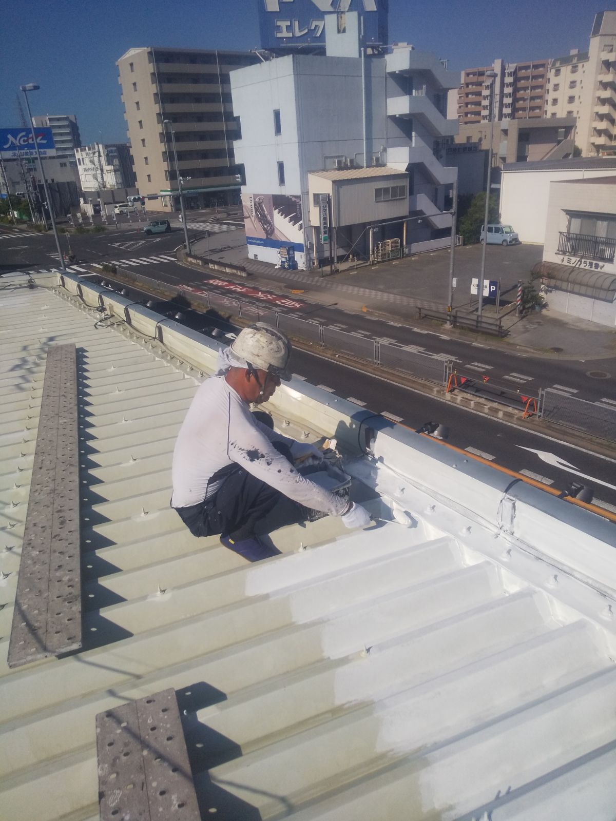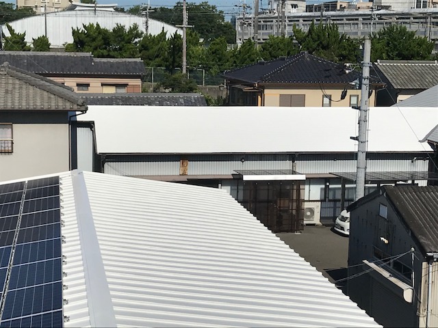 岡山市㈱滝澤鉄工所様 折半屋根を白で塗装し遮熱効果を上げる。