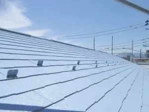 屋根の遮熱塗装でより効果の高い明るい色を塗った施工例のご紹介大阪市、松原市の屋根リフォーム・点検・補修なら街の屋根やさん大阪南店。