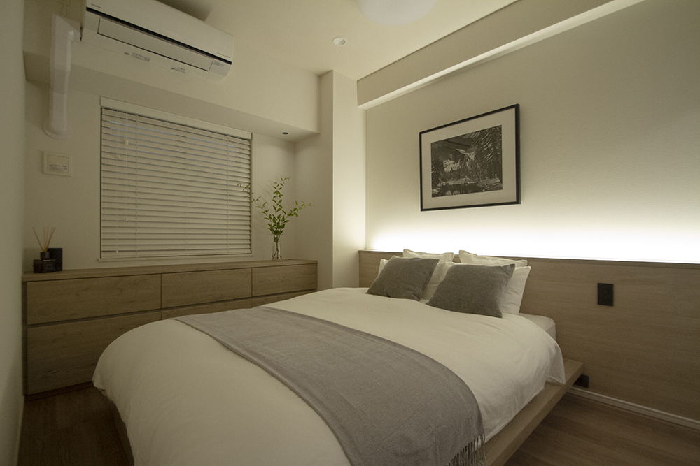 合理性と美しさを兼ね備えたホテルライクなベッドルーム -東京都世田谷区I邸-施工事例新築マンションオプションとリフォームのRe:Mansion。