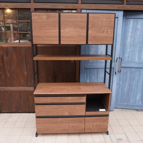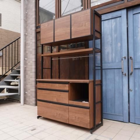 大川の食器棚製造メーカー古賀家具のspice スパイス3面キッチンボードです。落ち着いた色合いとスチールフレームのインダストリアルな雰囲気の食器棚。工業系やブルックリンスタイルなど男前インテリアに- kokoelma -ココエルマ- 雑貨・中古家具・北欧家具。
