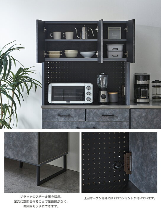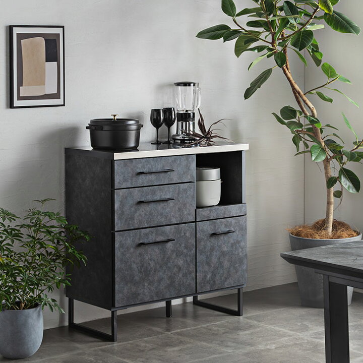 楽天市場 自社生産 大川家具 食器棚 キッチン 幅90 グレー 完成品 キッチン収納 セラミック キッチンボード 1人暮らし 北欧 インダストリアルモダン ステンレス スチール脚 脚付 木製 国産 民泊 送料無料 : REGLUS。