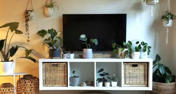 テレビ横で観葉植物が枯れるのを防ぐ!簡単な手入れ方法。