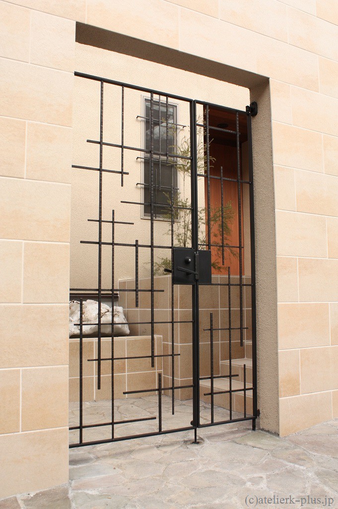 ロートアイアンの門扉 シンプル格子ロートアイアン工房 鍛鉄atelier K-plus ロートアイアン工房 鍛鉄atelier K-plus。