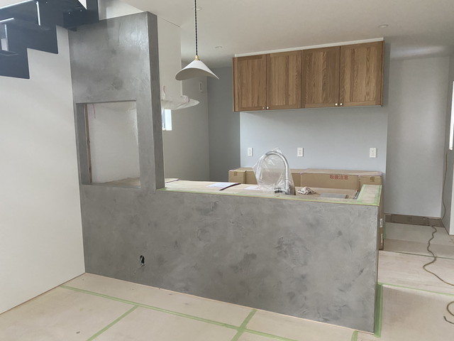 モルタルライクなキッチン腰壁事例 モルタルorモールテックス 公式スタッフブログひまわり工房 有限会社ひまわり工房。