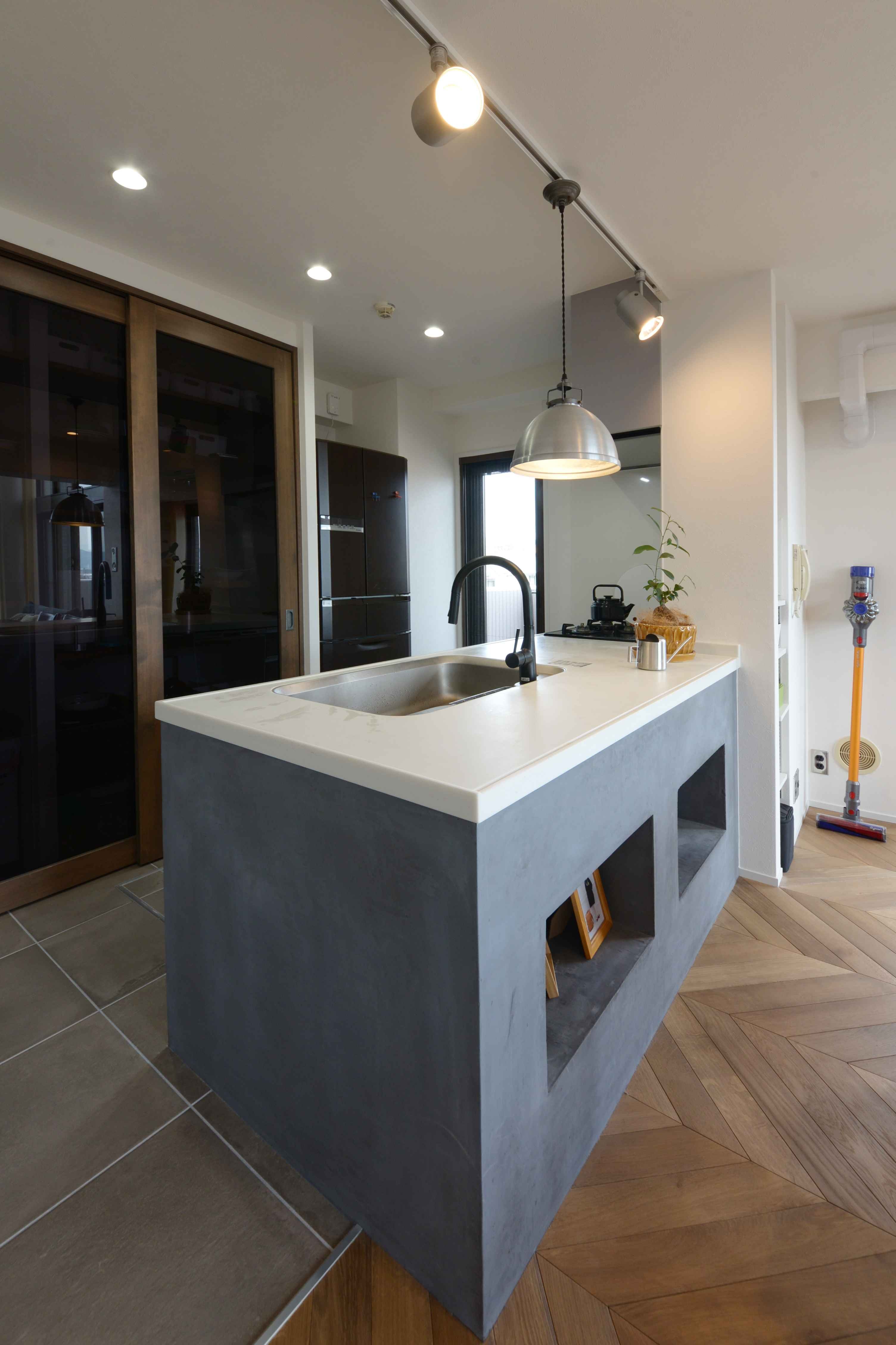 モールテックス アイランドキッチン腰壁星工業 有限会社栃木県の左官・塗り壁・タイル・モールテックスは星工業。