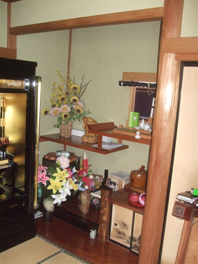 昔の沖縄では、お仏壇を置く場所に決まりがあり、一番座を床の間、二番座を仏間として、神様、仏様を分けていました。本来ならば専用の仏間があるのが理想ですが、今日の住宅事情を考えますとマンション、アパートではそうはいきません。 なので、仏間がない場合。