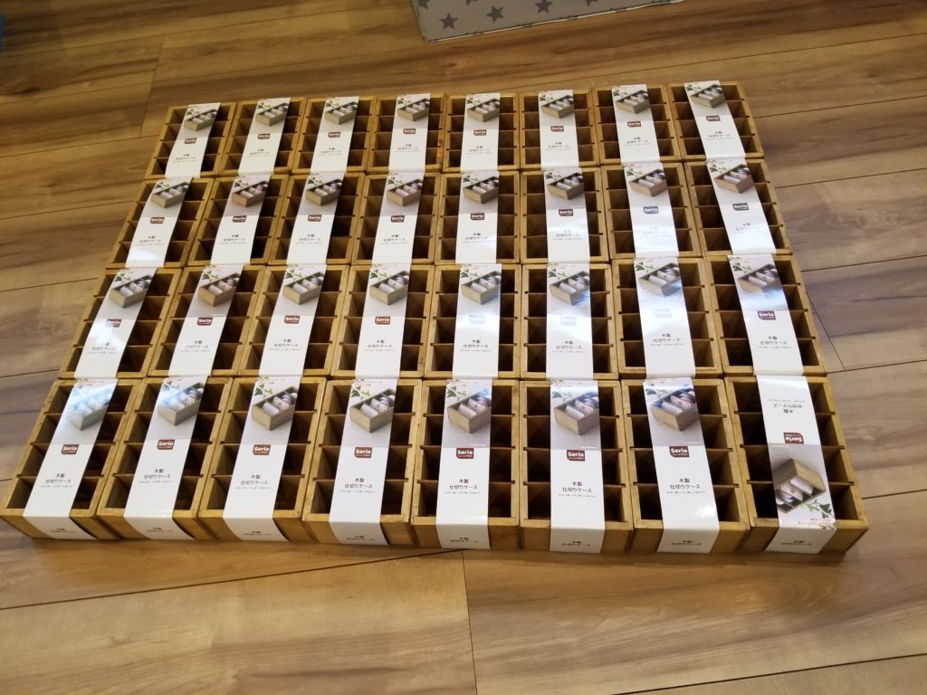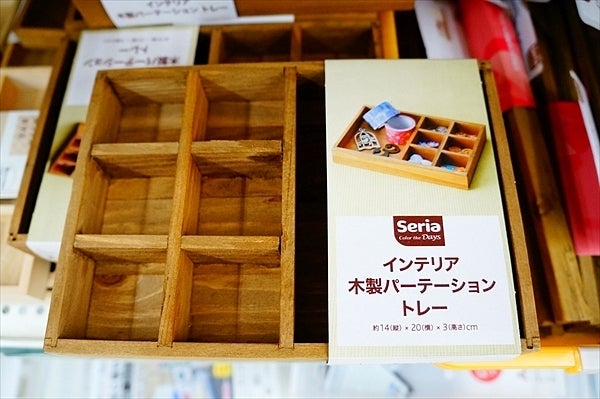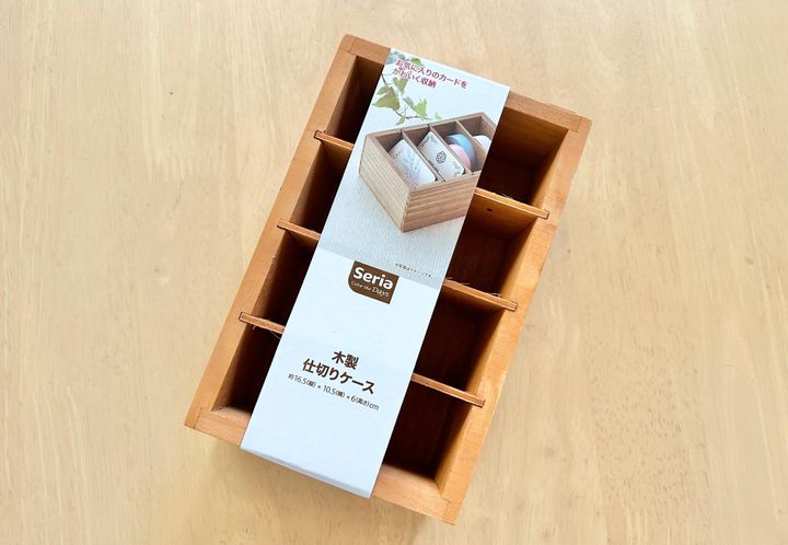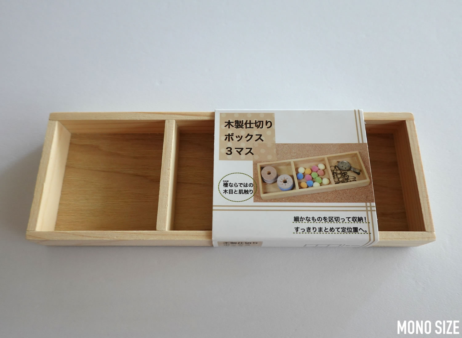 100均「木製仕切りケース」の商品情報とサイズ・収納例。セリアで販売 4947879706366。