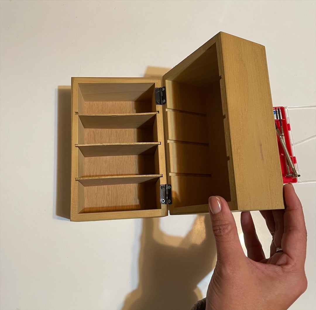 小屋女子DIYカフェ on X: "100均セリアのインテリア木製仕切りケースのリメイクが可愛くて凄い!2つ重ねて薬箱のようなボックスにもなるしトレーをいれるだけ簡単、プチ収納にも簡単なので作ってみてくださいね。 http:t.co 55NuwPrT2i http:t.co cdiI7USFRL"X。