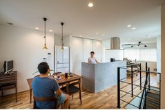 土間玄関とリビングの繋がりのある暮らし 街中の新築木造住宅 川越市新宿町 家づくり・建築デザイン・住宅設計は、建築設計事務所:独楽蔵 こまぐら。