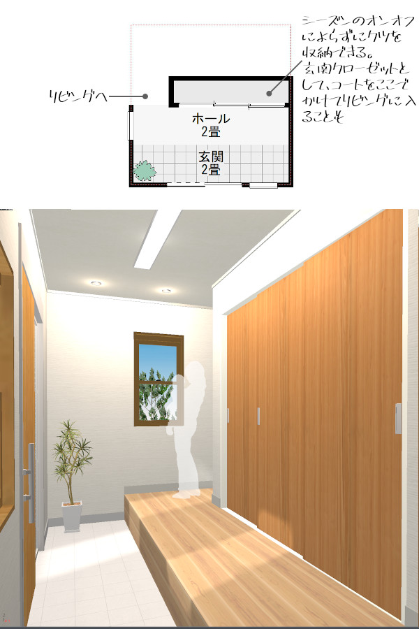 玄関が縦長・横長 3畳〜4畳 の間取り事例窓・収納などおしゃれな玄関の作り方も解説福井の注文住宅・工務店ノークホームズ。