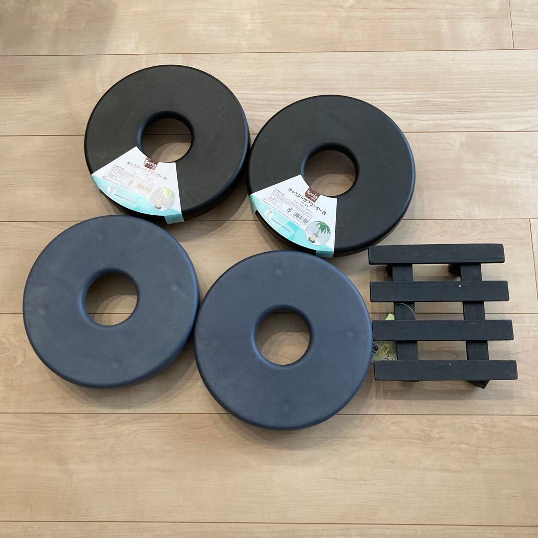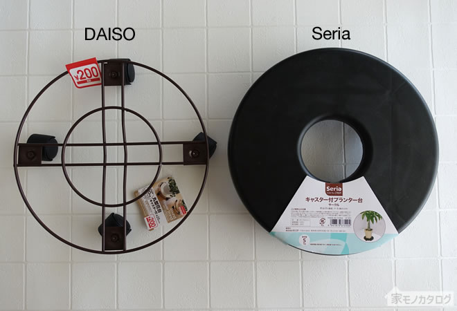 100均セリア「キャスター付きプランター台」の商品一覧・サイズ。丸型と角型が100円。