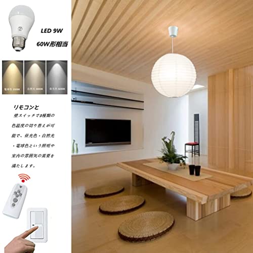 Akarilight 和室 照明器具 和風 ペンダント 和紙提灯 和モダン 照明 おしゃれ 天井 和紙 シェード ペンダントライト 1灯 和紙ランプペンダント 和風ライト 子供 口金E26 6畳 8畳 リモコン付き 3段階調色LED電球付Sizeee。