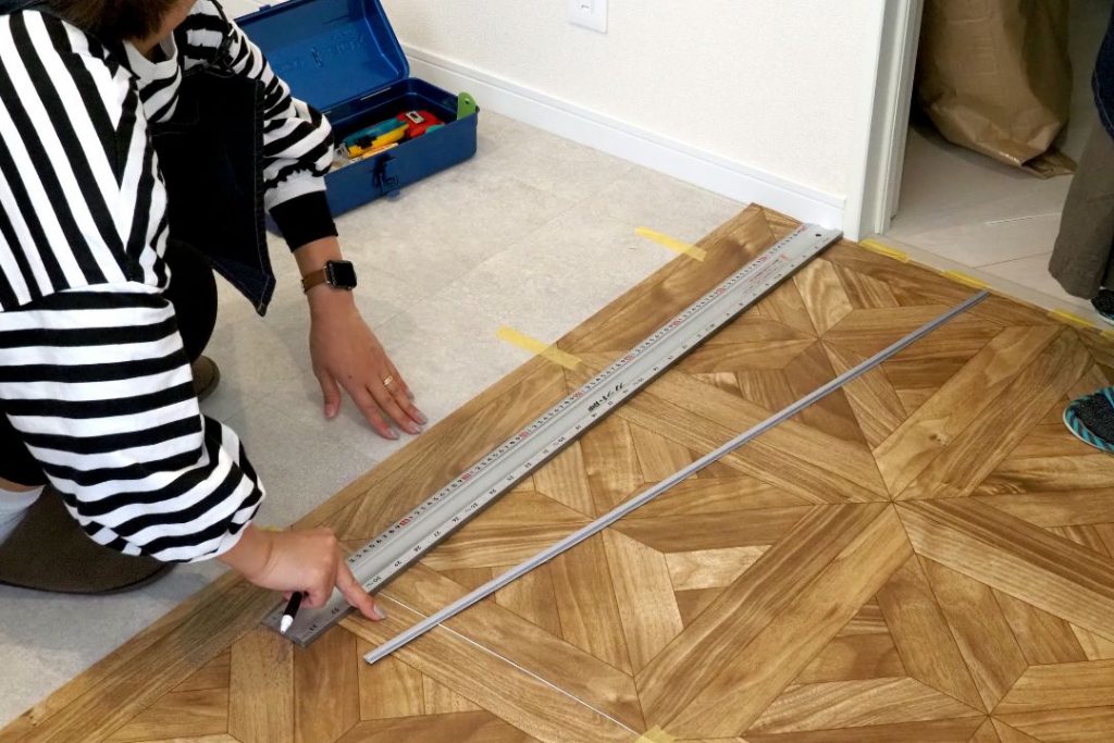 床DIY 違う柄のクッションフロア同士の継ぎ目はどうする?見切り材で区切る方法 – ラグリエ。