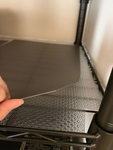 滑りやすいシート」+「滑らないシート」でスチールラックを快適に♪ ニトリ抗菌すべり止めシート暮らしニスタ。