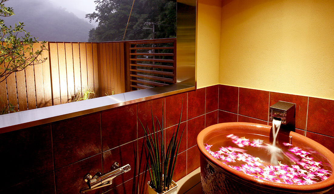 2023年3月リニューアル! モデレート半露天風呂付客室 最上階の半露天風呂温泉で最高の贅沢を旅館便り伊豆長岡温泉 富嶽 はなぶさ 公式中伊豆の温泉旅館。