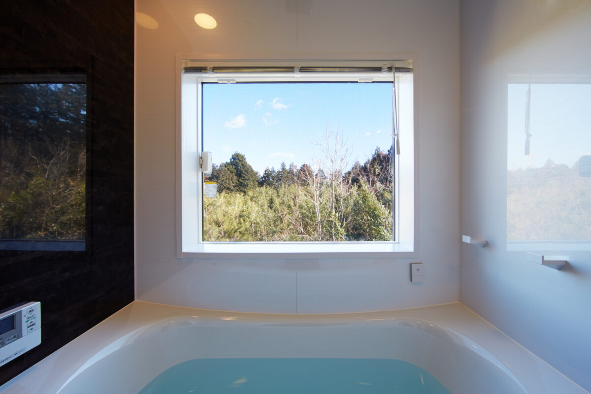 家のお風呂で半露天風呂感を!浴槽の配置と窓の高さと大きさにこだわる WEB内覧会・浴室編④– ローコストハウス&LIFEログ。