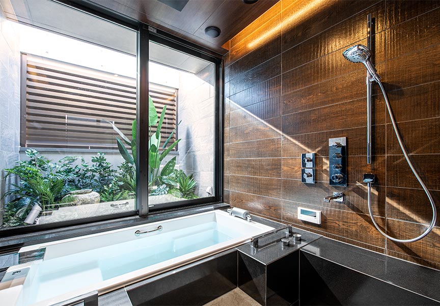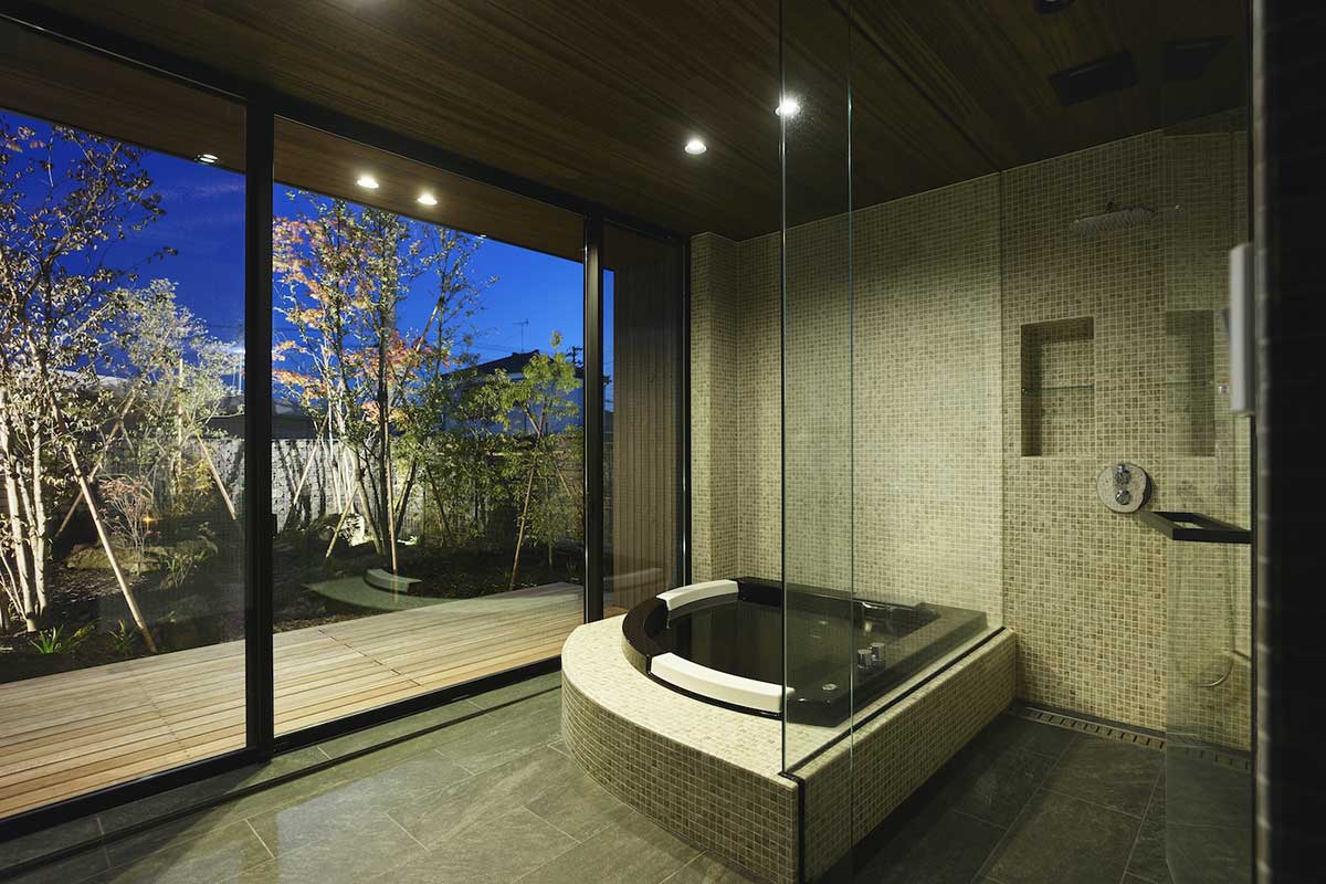福岡・個人住宅で半露天風呂注文住宅・新築住宅・半露天風浴室・UB清武修一。