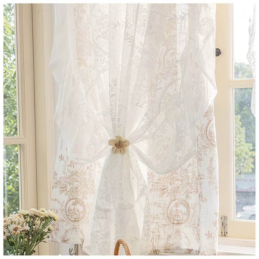 Amazonフランス風ヴィンテージレースダブルレイヤーカーテン、白花刺繍ベッドルームガーゼカーテン、田園風リネンショートカーテン、ロッドポケットカフェ カーテンSize : W2xH2.2m 79x87in カフェカーテン オンライン通販。