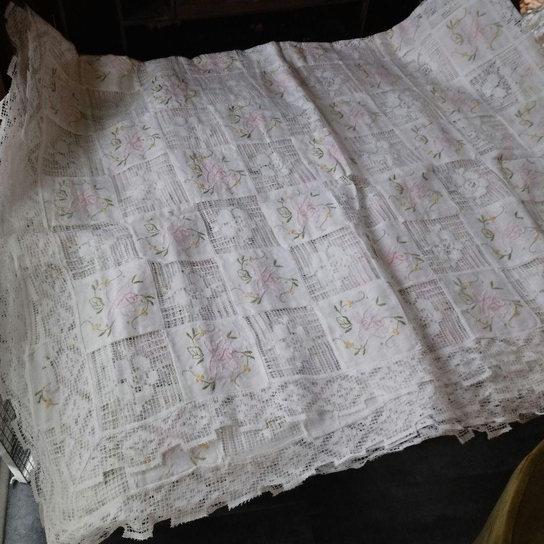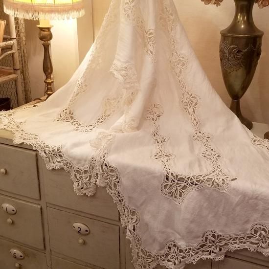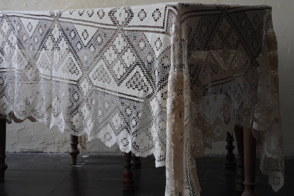 刺繍ワーク コットンレース 大判 イギリスヴィンテージレース カーテン アンティークコットンランチョンマット レース カットワーク 刺繍 イギリスアンティークストリュフ 20210707Antiques Truffle 京都 鹿ケ谷。