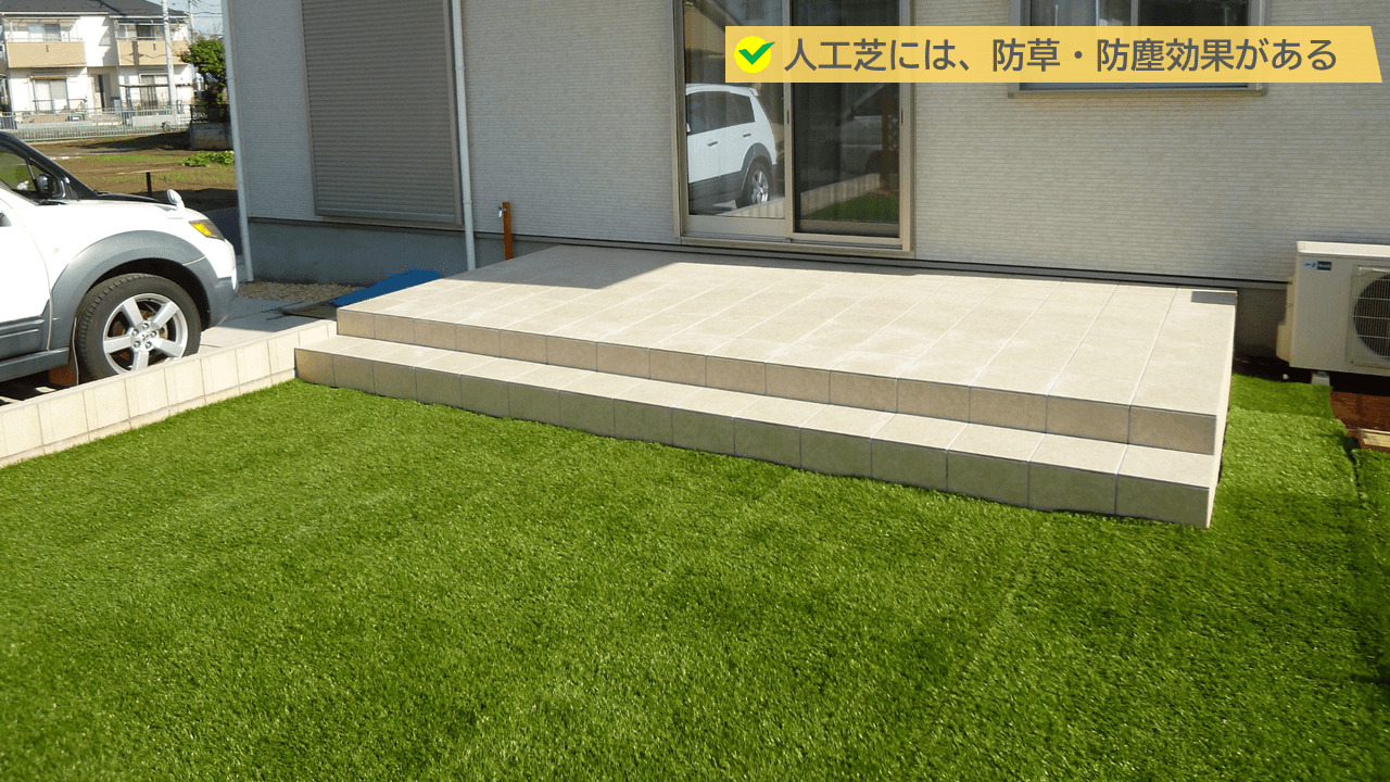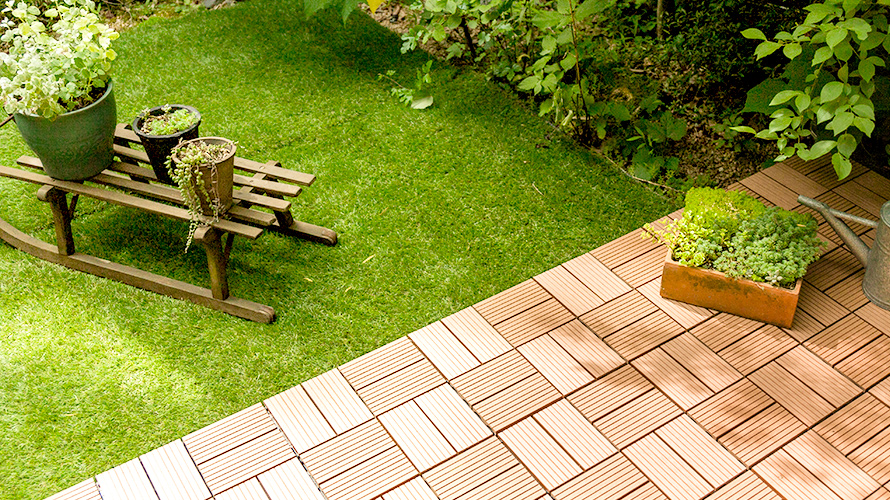 人工芝とタイルの組み合わせ!手軽にできるおしゃれな庭づくりにおすすめの商品5選暮らしのライフマガジン。