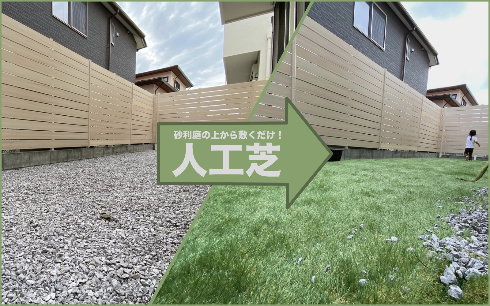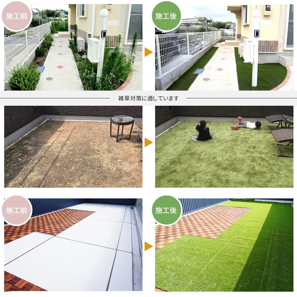 天然芝から人工芝へのリフォーム Before→After 株式会社グリーンフィールドデザインサイト - 高機能人工芝リアリーターフ®と人工 壁面緑化パネルビスタフォリア®。