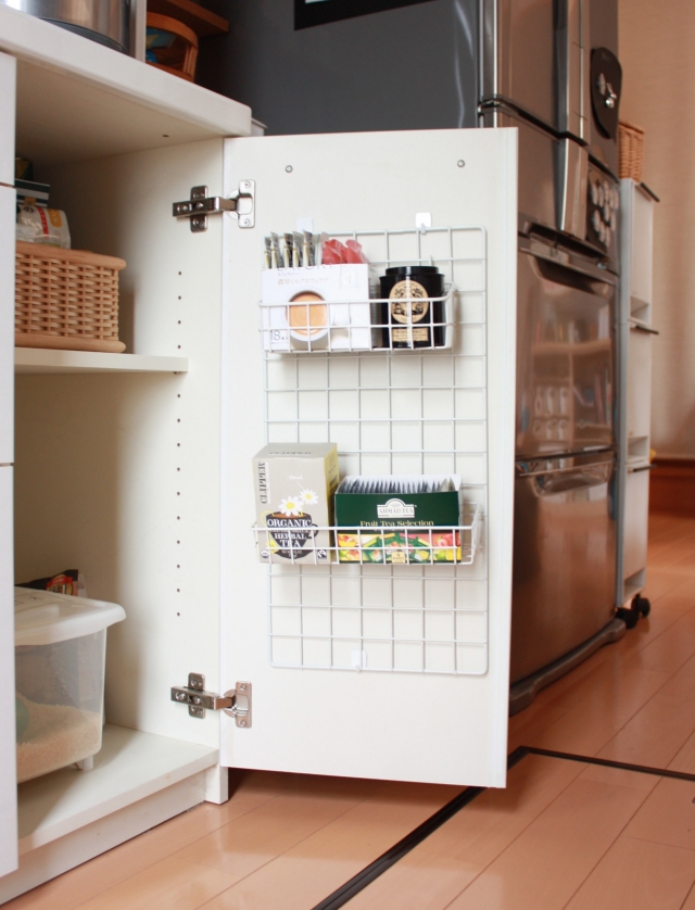 開き戸の収納には、開ければすぐに取り出せる100均のワイヤーネットがおすすめ! - 片づけ収納ドットコム。