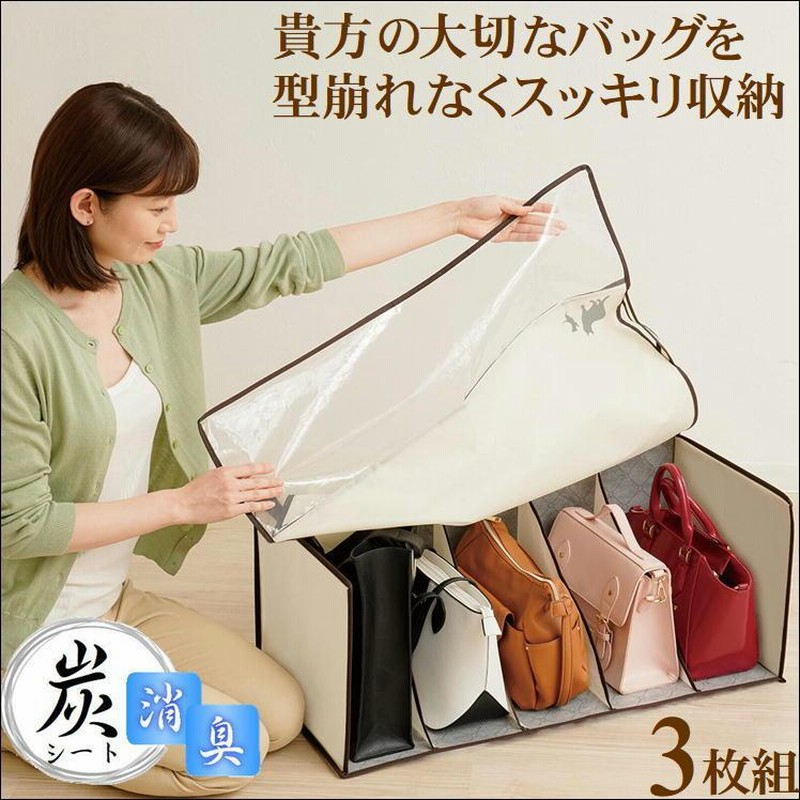 鞄 収納 バッグ 収納ケース クローゼット カバン 収納ボックス ブランド バッグ 保管 型崩れ 予防 対策 バック 立てて収納 炭消臭 かばん収納ケース3枚組LINEブランドカタログ。