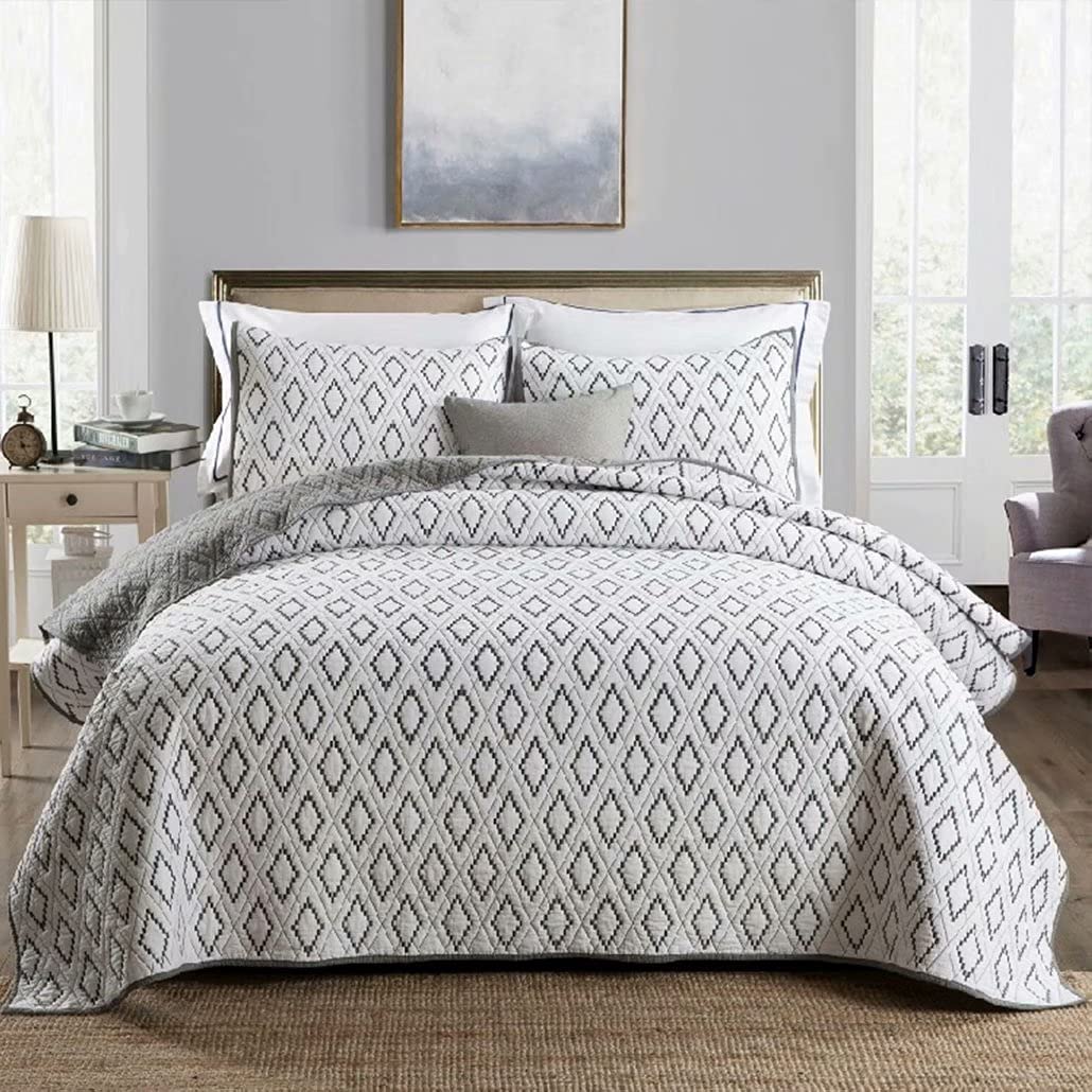 キルトコットンベッドスプレッドセット キングサイズ ホワイト 軽量 暖かいエンボス加工掛け布団キルトベッドスローカバーレット、ベッド ベッドカバーシングル180x230cmキルト,紺ネイビー,アイボリー,ホワイトの人気カラ。