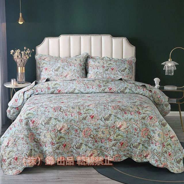 マルチカバー キルト ベッドスプレッド ベッドカバー シングル セミダブル 花鳥青 北欧 おしゃれ 100%綿 キルトカバー ベット ベッドカバーマルチ カバー ク風北欧 寝具カバー 3点セット ベッドスプレッド キルト おしゃれ ダブル 四季適用 高級 高質感 布団カバー。