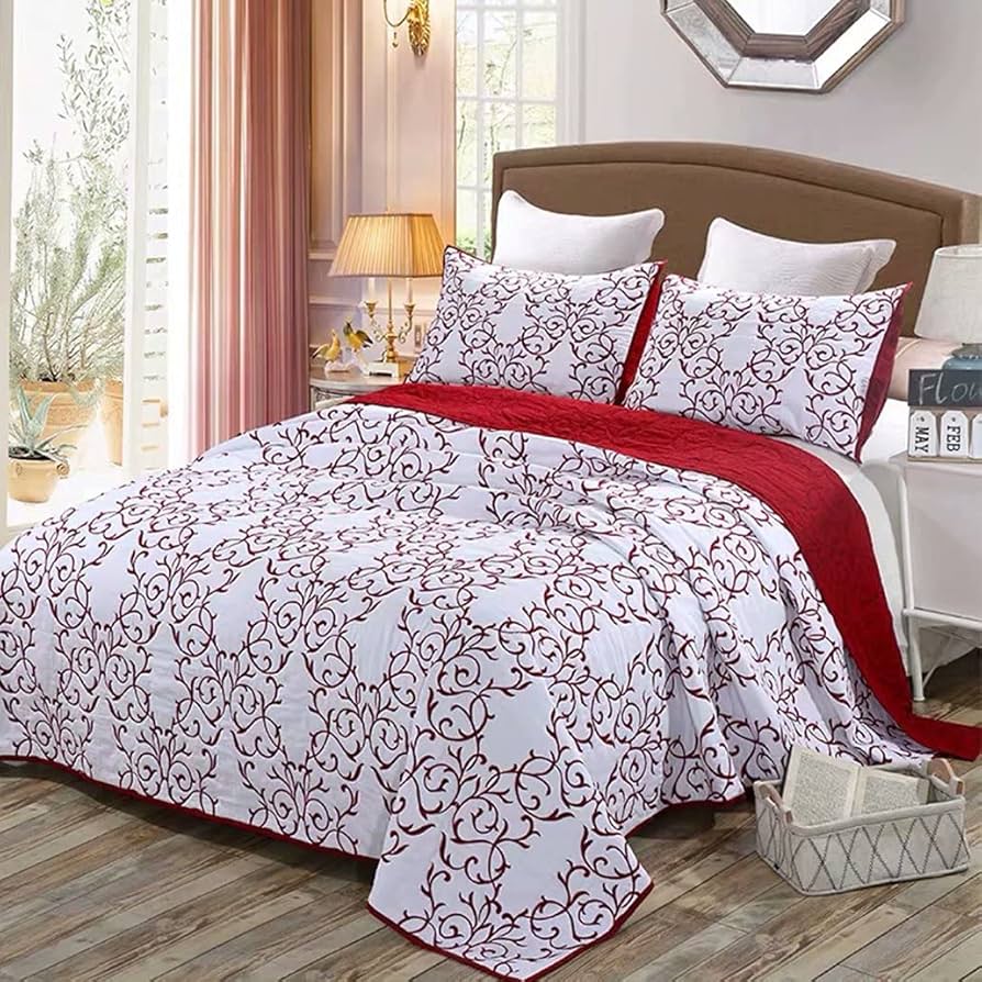 ヴィンテージスタイルの花柄プリントキルトベッドスプレッドセット、コットン居心地の良い ダブルキングサイズ寝具3点セット、9,250x Amazon綿無地 ベッドカバー ベッドスプレッド マルチ カバー キルト おしゃれ ダブル 綿100% 3点セット小鳥 ベッドカバー。