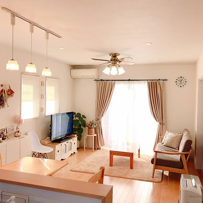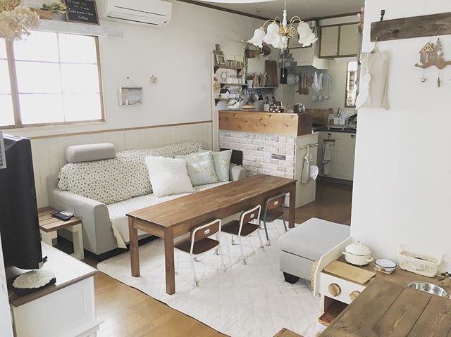 リビングダイニング リビング 狭いLDK かすみ草 シンプルナチュラル などのインテリア実例 - 2019-01-18 09:38:23RoomClip ルームクリップ。
