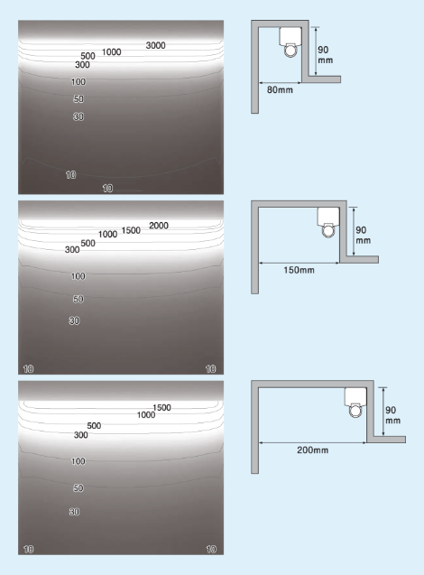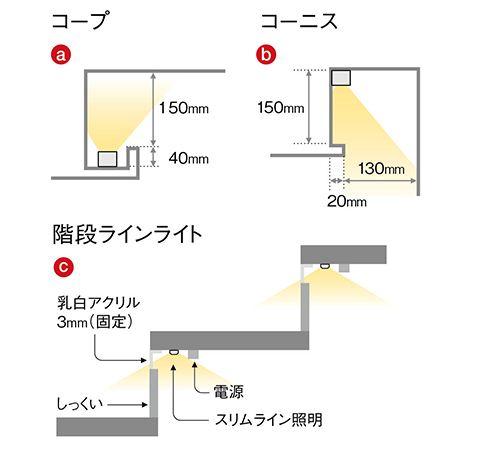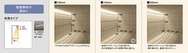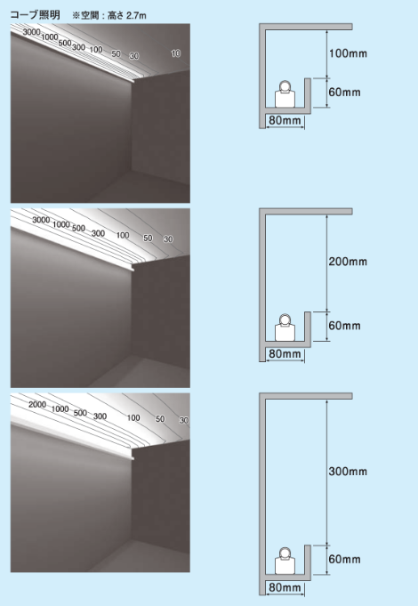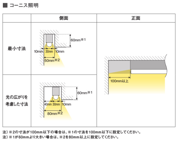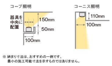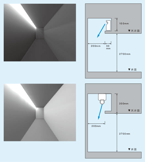 コーニス照明の効果とランプ位置通販モノタロウ。