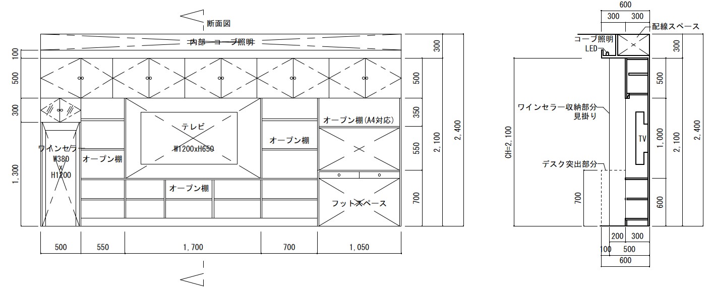 天井間接照明の断面図事例図面屋.com 店舗設計詳細図「虎の巻」。