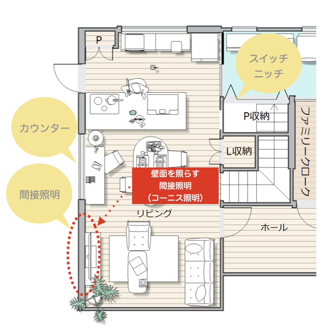 すまいのあかり設計集<事例編>:住宅 手法別事例「建築化照明」 住宅用照明器具Panasonic。