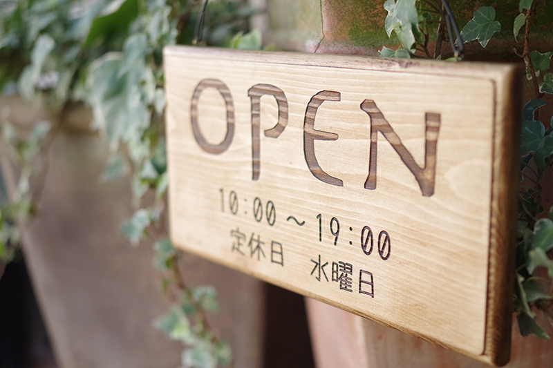 本日満席 定休日 木製看板 営業時間と定休日が入ったOPEN CLOSED。