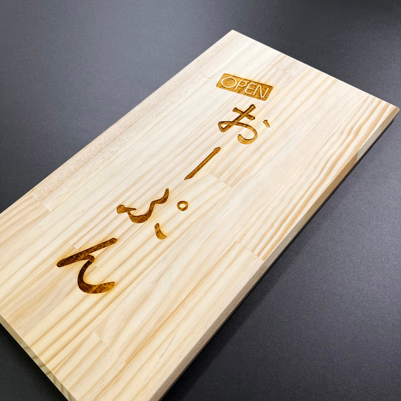 木製看板 営業中 準備中 吊り下げ 両面 無垢材 立体彫刻 オーダーメイド 和風。