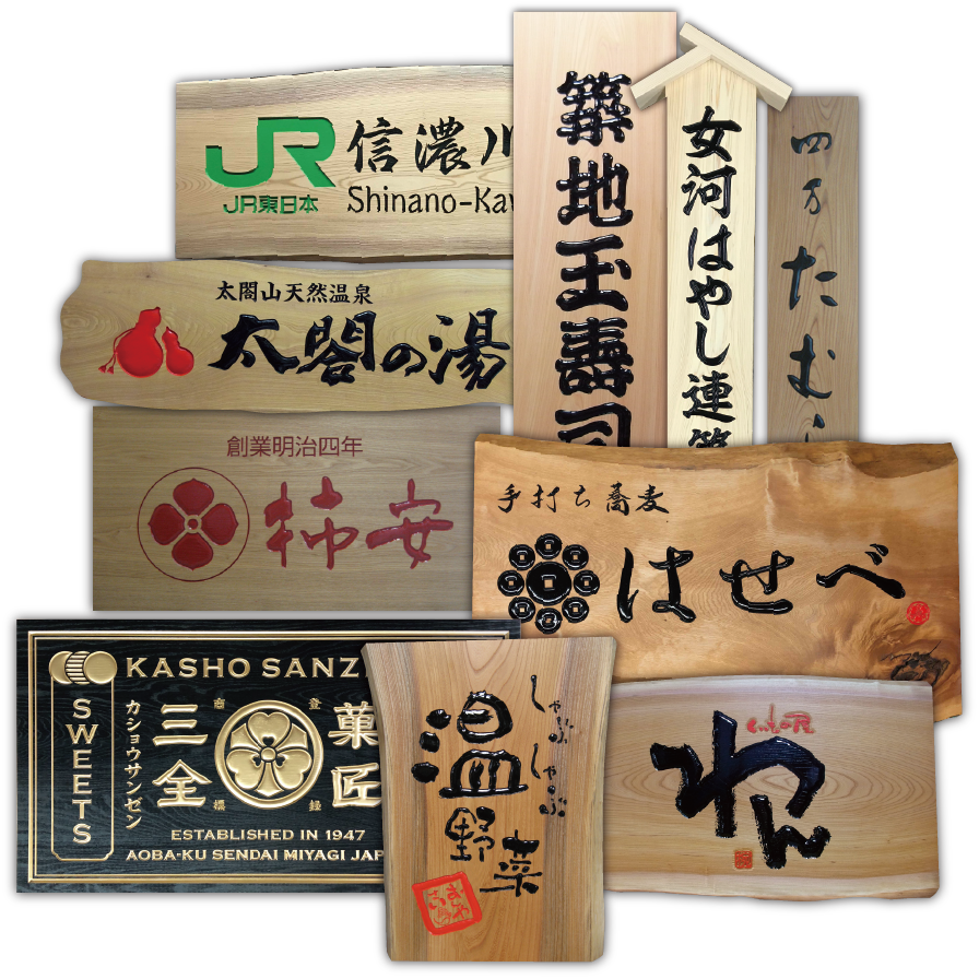 木彫り看板オーダー注文 全国配送東京 神奈川の看板屋サインアート。