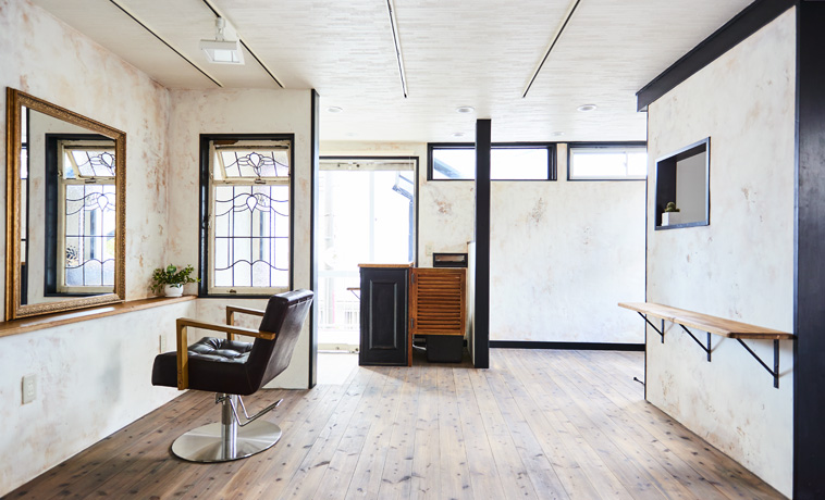 美容室 内装デザインと施工事例01仙台 サンデコ 特殊塗装 外壁リノベーション モルタル造形 おしゃれ店舗内装櫻一スタイル。